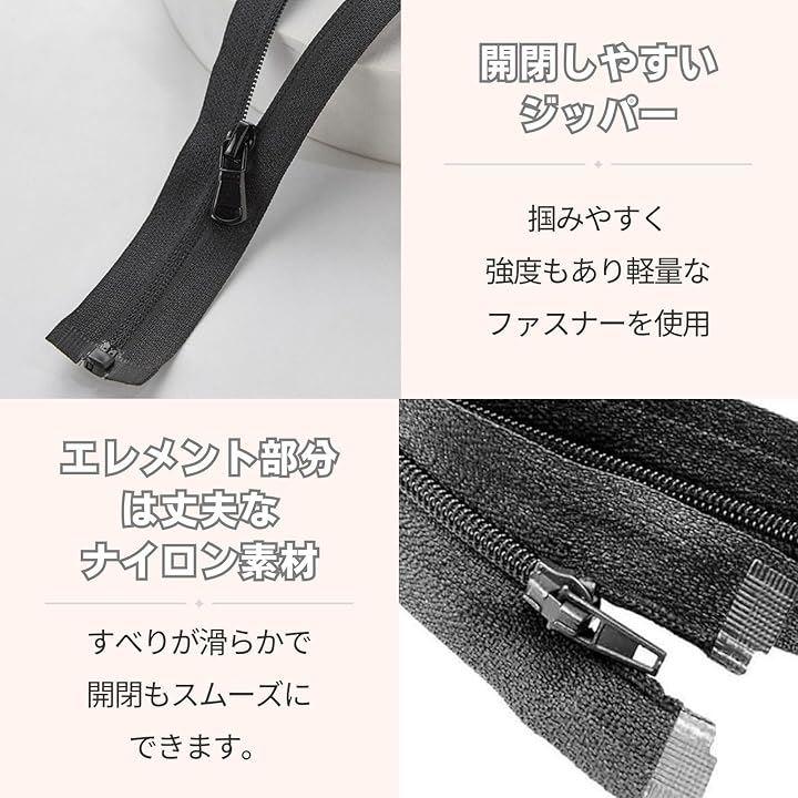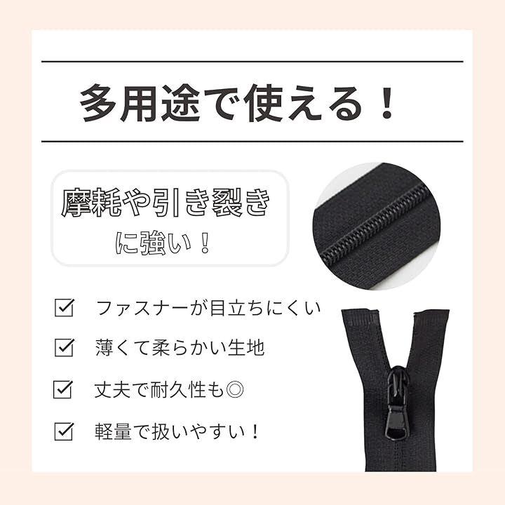 スライダーを一番下まで下ろす事で左右分離する事ができるので、ジャケットやジャンバー、コートなどの上着に最適な、オープンファスナーです。