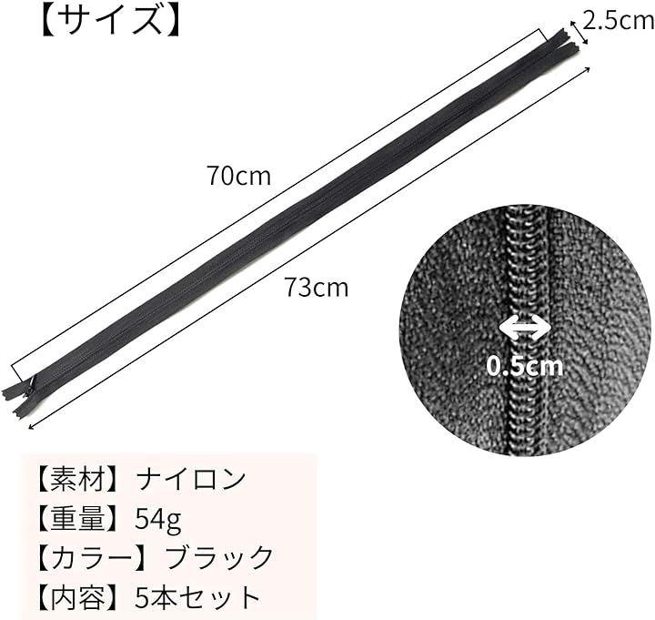 「サイズ」全長73cm、開口部長さ70cm、幅2.5cm、エレメント幅0.5cm「材質」ナイロン 「重量」54g「カラー」ブラック「内容」5本セット