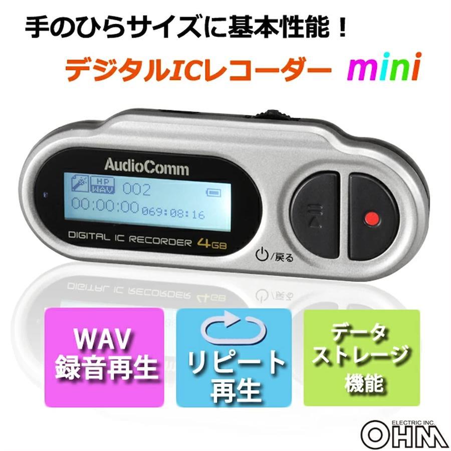 3営業日以内に発送≪新品未開封品≫:オーム電機 AudioComm ミニICレコーダー 4GB ICR-U114N 09-3012 OHMブランド オーム(OHM)ハードウェアインターフェイス USBマイク波形率 内蔵フォーマット WAV, MP3オーディオ商品寸法 (長さx幅x高さ) 7.6 x 2.9 x 1.9 cmメモリストレージ容量 4 GB商品の重量 19 グラムマイク動作モード ステレオイヤホン,ステレオミニプラグ● 手のひらサイズに基本性能を搭載したミニサイズICレコーダー● 内蔵メモリー4GB● WAV録音再生、MP3音楽再生● リピート再生機能搭載● サウンドイコライザー搭載● バックライト付き液晶● データストレージ機能搭載● micro USB端子搭載▼仕様▼■ 電源:DC1.5V 単4形乾電池×1本(別売)■ 内蔵メモリー:4GB■ 再生対応フォーマット:WAV/MP3(32~320kbps)■ 録音フォーマット:WAV(HP:128kbps/SP:32kbps)■ 録音可能時間:SP:約275時間 HP:約68時間■ ディスプレイ:132×32ドットLCD■ 乾電池