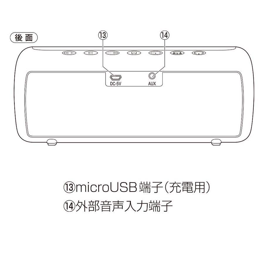 【 仕 様 】■ 電源:DC5V(直流)1A(USB給電…microUSB入力端子)■ 内蔵バッテリー:充電式リチウムポリマー電池(3.7V2500mAh)■ 実用最大出力:5W×2■ 再生周波数帯域:100Hz~20kHz■ スピーカー:口径45mm×2(4Ω)、パッシブラジエーター搭載