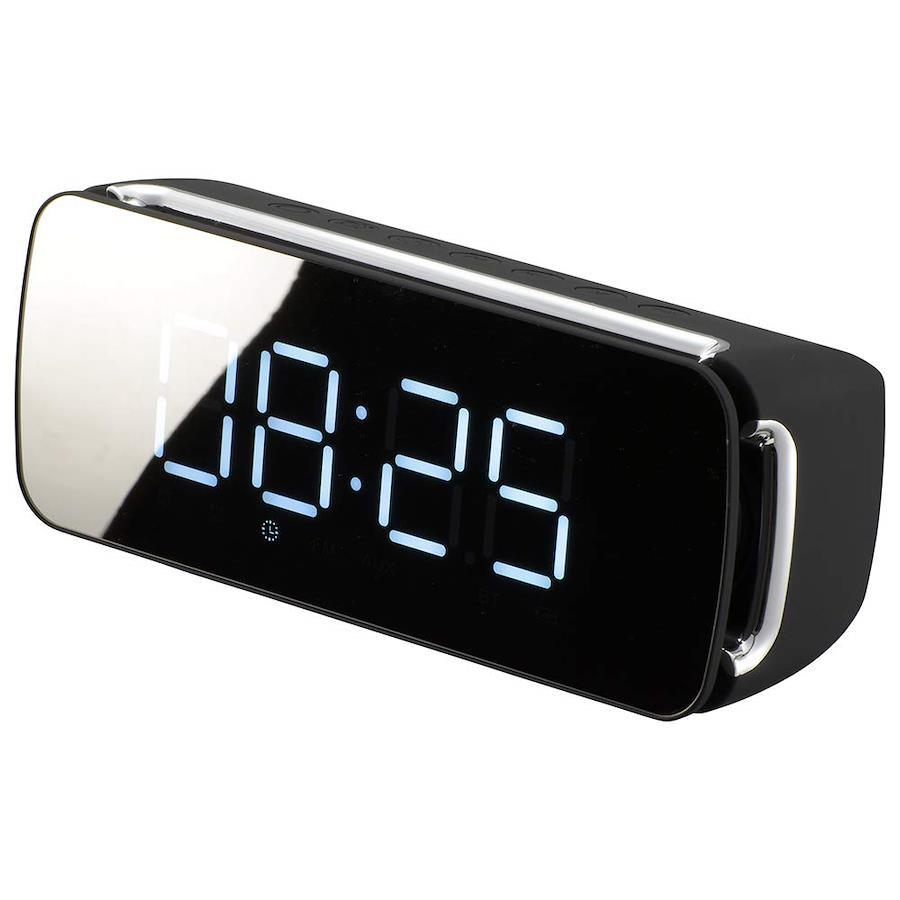 ● 鏡面ディスプレイ● 時刻表示、アラーム機能付● 外部音声入力端子付● USB充電式● 本体カラーはブラック