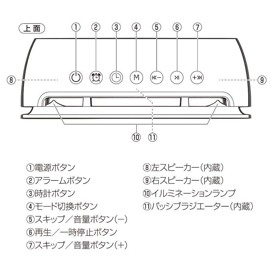 ■ 接続:電源…microUSB端子、外部音声入力…φ3.5mmステレオミニジャック■ 通信方式:Bluetooth標準規格Ver.4.2■ 対応プロファイル:A2DP、AVRCP■ 変調方式/周波数帯域:FHSS/2.402~2.480GHz■ 最大通信距離:見通し約10m(Class2)■ FM受信周