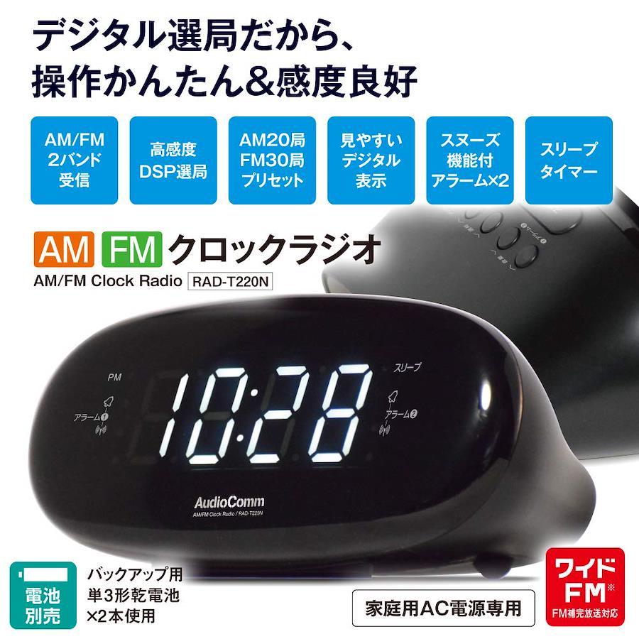3営業日以内に発送≪新品未開封品≫:オーム電機 AudioComm AM/FMクロックラジオ ブラック RAD-T220N 03-7222 OHM