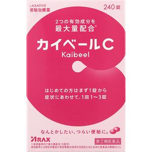 カイベールCは、ビサコジルとセンノサイドという2つの有効成分を承認基準内最大量配合※した便秘薬です。これらの作用により、なんとかしたい、つらい便秘と便秘に伴ういろいろな不快症状に対してすぐれた効果をあらわします。症状に合わせて1回1~3錠、服用量を調節できます。はじめての方はまず1錠から効き目をお試しください。※承認基準内最大量を配合(3錠中)。承認基準とは厚生労働省が承認事務の効率化を図るために定めた医薬品の範囲のこと。