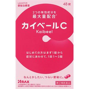 カイベールCは、ビサコジルとセンノサイドという2つの有効成分を承認基準内最大量配合※した便秘薬です。これらの作用により、なんとかしたい、つらい便秘と便秘に伴ういろいろな不快症状に対してすぐれた効果をあらわします。症状に合わせて1回1~3錠、服用量を調節できます。はじめての方はまず1錠から効き目をお試しください。※承認基準内最大量を配合(3錠中)。承認基準とは厚生労働省が承認事務の効率化を図るために定めた医薬品の範囲のこと。