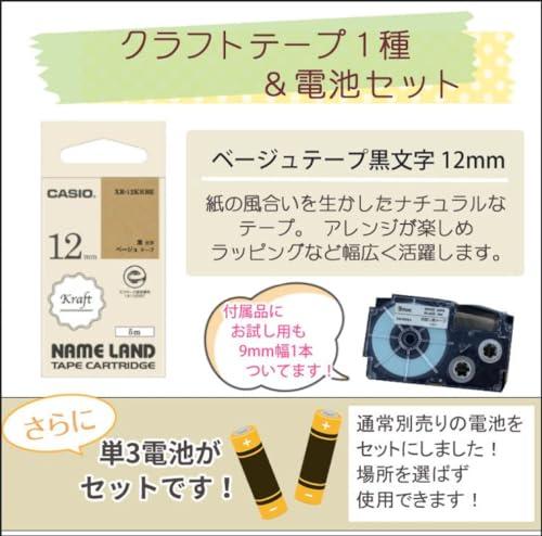 通常1-5営業日で発送:かんたんガイド付き!【4点セット】ラベルライター ネームランド ピーナッツモデル スヌーピー i-ma(イーマ) KL-SP10-PN & テープカーリッジ XR-12KRBE(クラフト ベージュテープ) 12mm & 単三電池10本& かんたんガイド