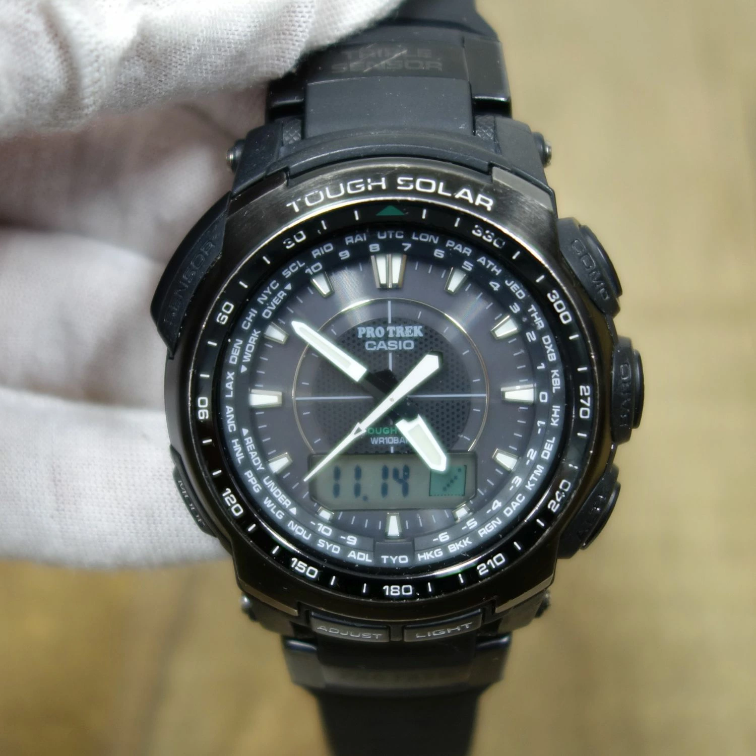 ■商品名カシオ CASIO PRO TREK TOUGH MVT ソーラー 電波 時計 ウォッチ PRW-5100-1JF プロトレック アウトドア キャンプ 登山 - サイズ-■状態説明・CASIO「PRO TREK TOUGH MVT PRW-5100-1JF」です♪・機能性と使いやすさを両立したトリプルセンサーアウトドアウォッチ◎・2024年 電池交換済み・2025年 ベルト交換済み・使用感や小キズはございますがまだまだお使い頂ける状態です♪※パッケージ内部の白いクッションは劣化によりダメージがございます。【付属品:一枚目写真のすべて】■素材-■カラー-■表記サイズ-■実寸サイズ■状態ランクB 傷や汚れがあるが、まだまだ使用可能な状態■店舗管理番号ce11ot-rk26y10523