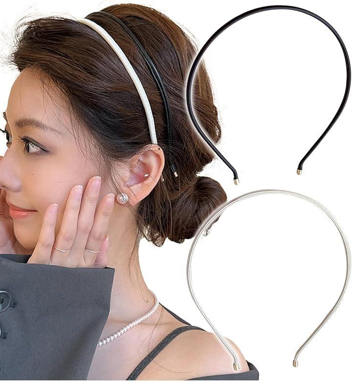 「シンプルでシックなデザインのカチューシャ」レザー風の落ち着いたデザインのカチューシャ。