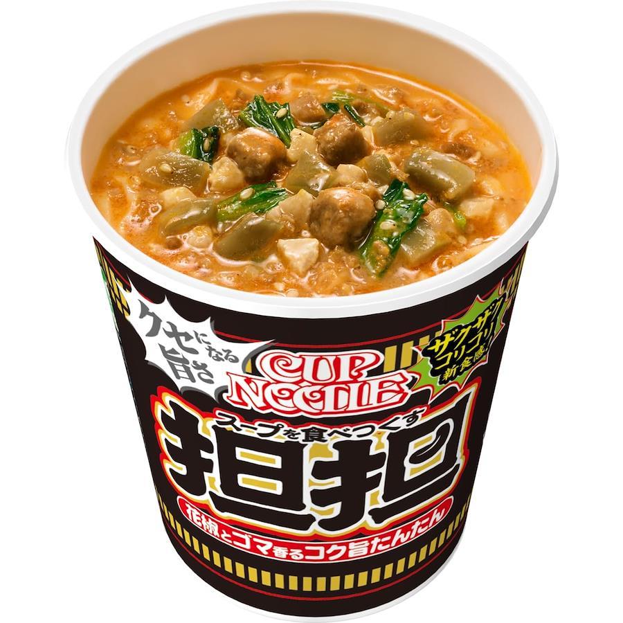スープを食べつくす!カップヌードル担担 具材にカシューナッツやザーサイ、チンゲンサイやゴマなど、食感豊かなカップヌードル。ザクザクコリコリな食感具材を、花椒が香るねりごまのコク旨な担担スープごと最後のひと口まで食べつくす!
