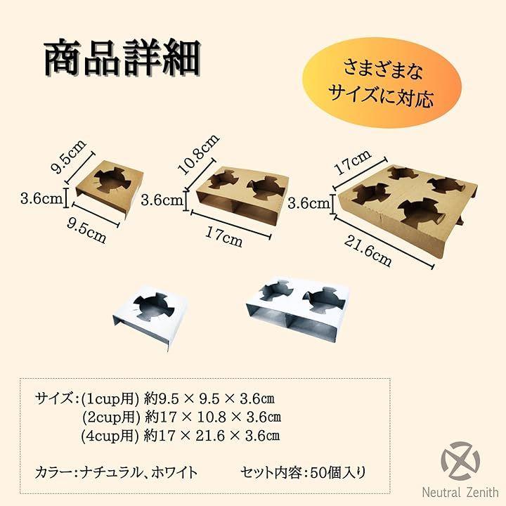 「商品詳細」サイズ:(1cup用) 約9.5 x 9.5 x 3.6cm (2cup用) 約17 x 10.8 x 3.6cm (4cup用) 約17 x 21.6 x 3.6cm カラー:ナチュラル、ホワイト セット内容:50個入り