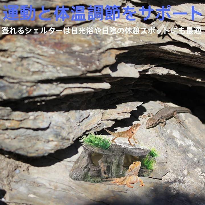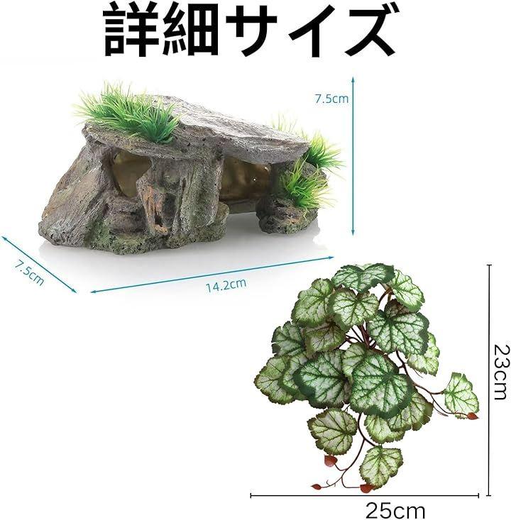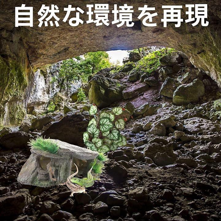 自然な環境を再現 リアルな岩肌のシェルターとアイビーモチーフの人工植物で、ケージや水槽に自然の雰囲気を演出。