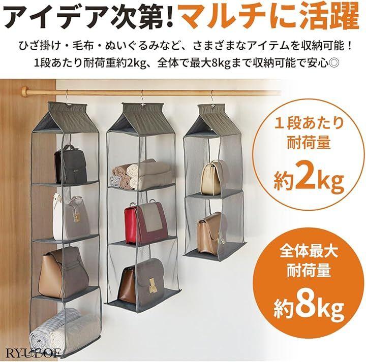 「選べるサイズ&しっかり収納」 吊り下げ式バッグ収納は、2段・3段・4段の3タイプ展開。
