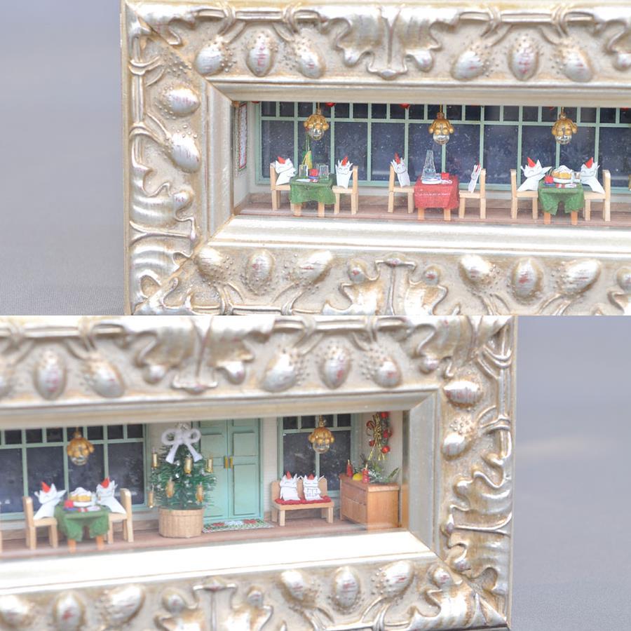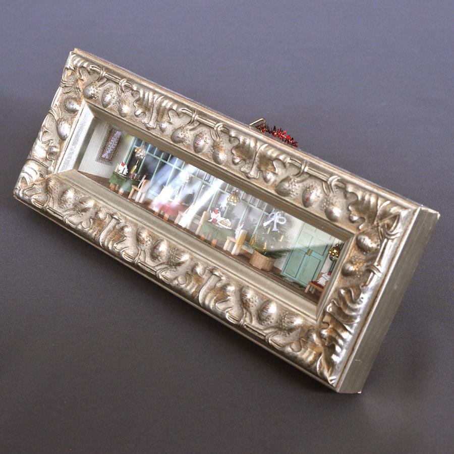 備考:机や棚に置いて、横から見る形です。覗き込むようにしてご鑑賞ください。絵画のように壁にかけて展示、ご鑑賞もお勧めです。パーツはすべて接着してあり、額の取り外しはできません。