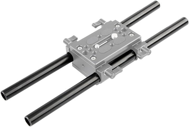 一眼レフカメラ、ロッドクリップ、ショルダーサポートシステム、棒材、ジンバル、ハンドル等の装着に対応します。