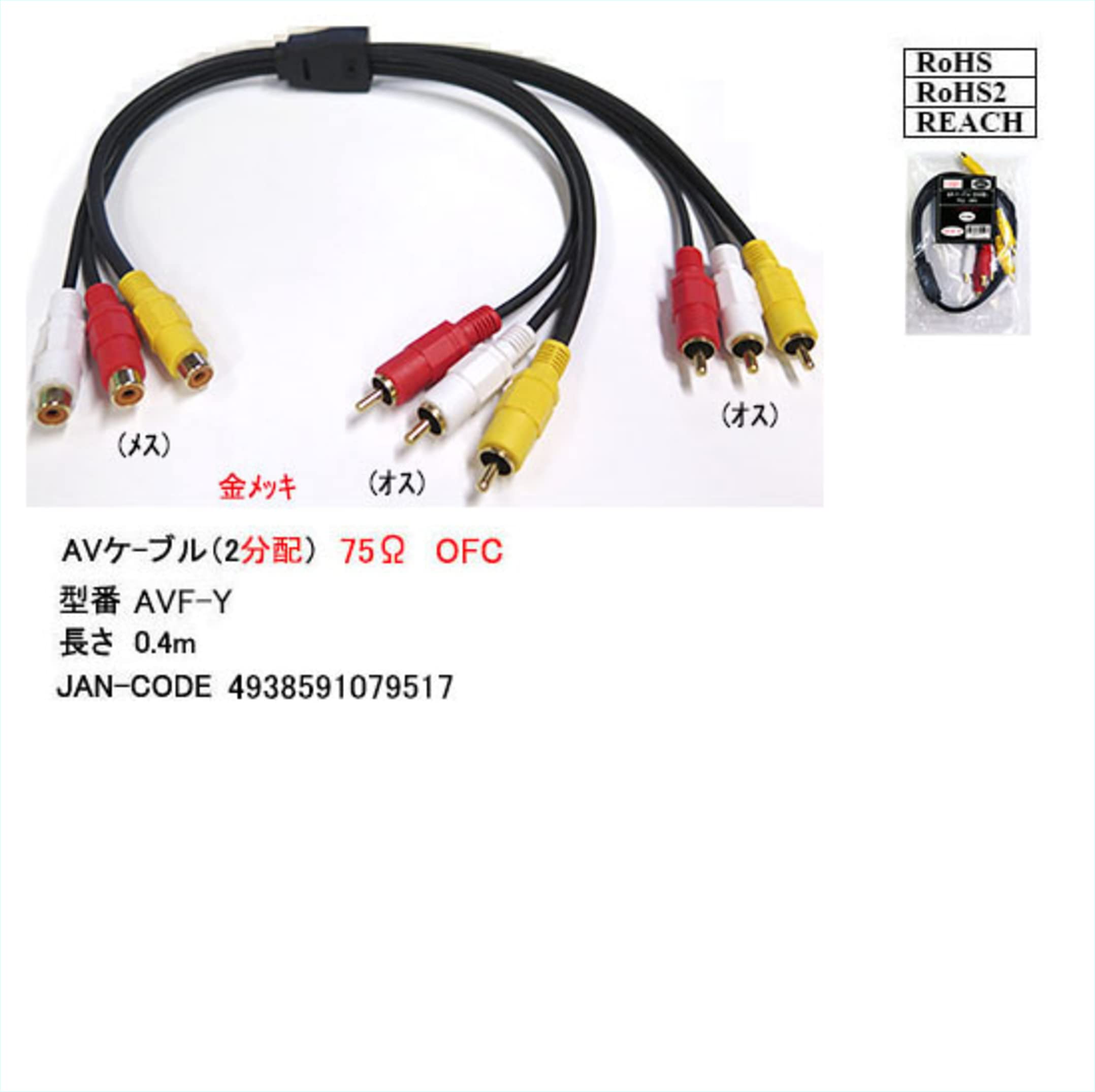 3営業日以内に発送≪新品未開封品≫:カモン COMON RCA-AV2分配ケーブル(メス-オスx2) AVF-Y