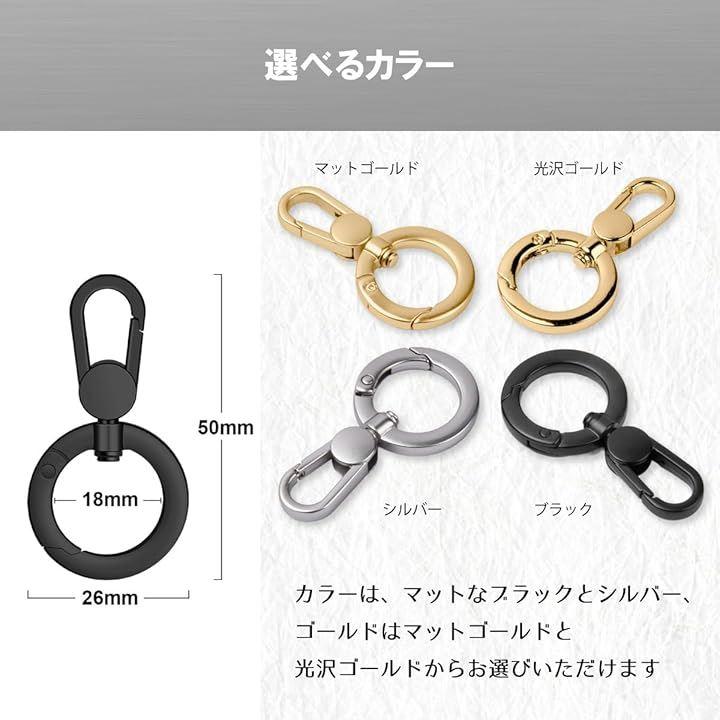 360°回転・大きめリングで自由度アップ スマホケースや小型バッグに取り付けできる 高品質カラビナフック。