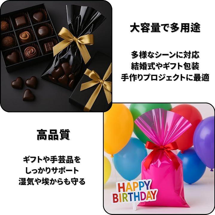 「高品質で安心」破れにくい高品質セロハンは、ギフトや手芸品をしっかりサポート。