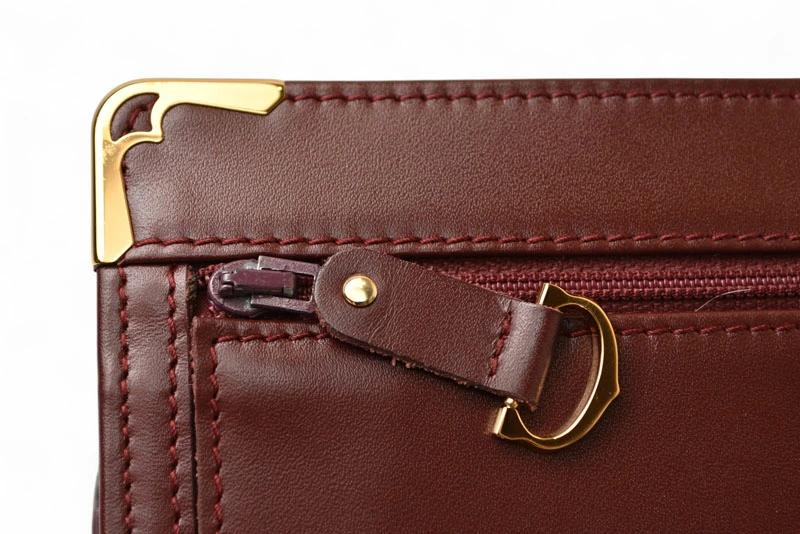 商品説明 | Cartier(カルティエ)の人気ライン「マストライン」より、クラシカルなクラッチバッグのご紹介です。深みのあるボルドーカラーのレザーにゴールドの金具が映えるデザインは、ヴィンテージならではの存在感。上質なカーフレザーを使用し、カルティエらしい気品と高級感を漂わせます。メンズのセカンドバッグとしてはもちろん、ユニセックスでお使いいただける万能アイテム。特別なシーンやフォーマルスタイルの格上げにおすすめです。 |