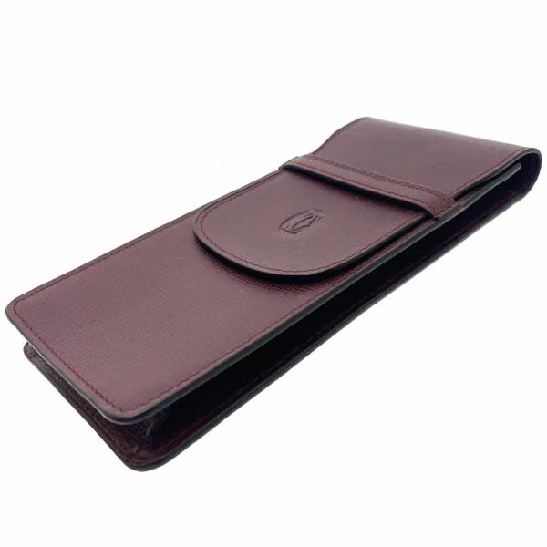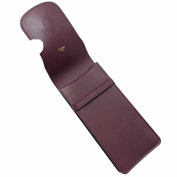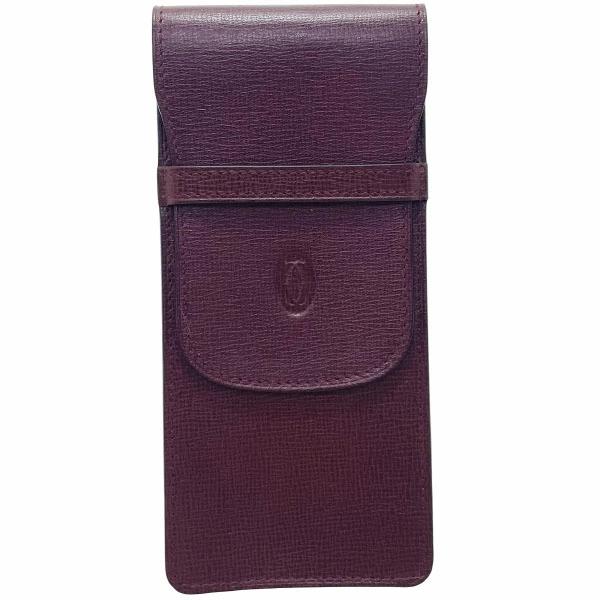 カルティエ メガネケース マストライン 眼鏡ケース レザー 革 ボルドー ワインレッド Cartier 2C めがねケース サングラスケース アイウェア用品 アイウェア小物 箱付き【中古】