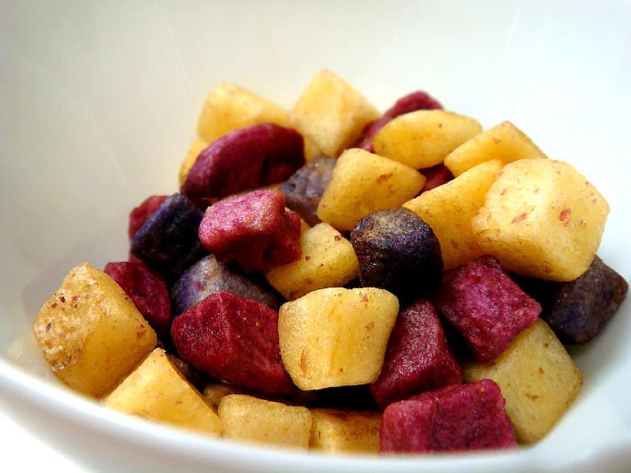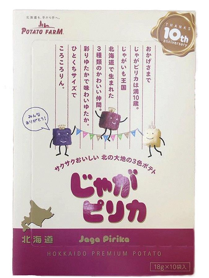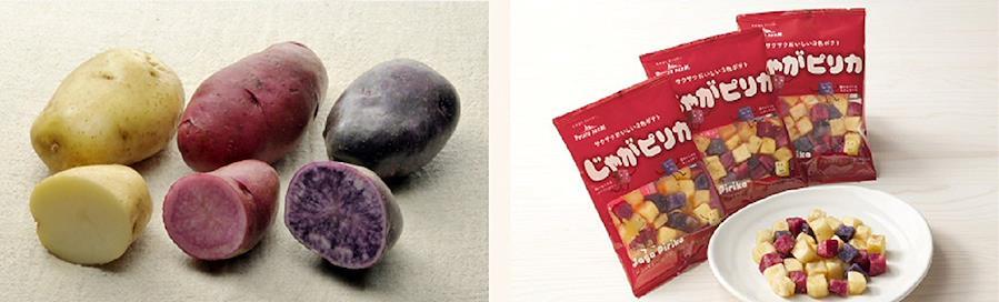 「じゃがピリカ」の原料となるトヨシロ、インカのめざめ、キタムラサキはすべて北海道産です