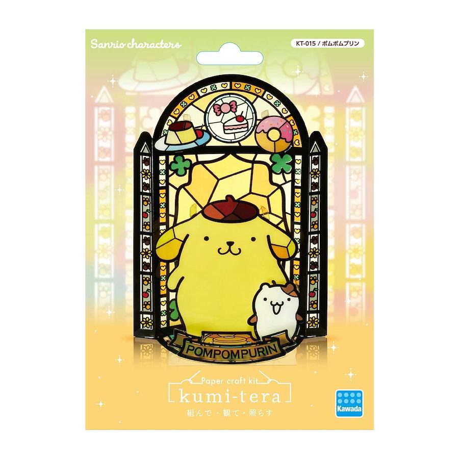 組み立て簡単、接着剤不要の「クミテラ」 ステンドグラスシリーズにサンリオキャラクターズの新商品が登場!●ポムポムプリンをモチーフに、キャラクターが飛び出して見える不思議なステンドグラスの空間を表現。色鮮やかで飾り映えのある商品です。●印刷された透明のプラスチックシートからパーツを取り外して組立てるだけ。誰でも簡単に組立てることができます。●照明・ライト、また窓際など自然光の当たる場所に飾ると、光に照らされたステンドグラスデザインを楽しめます。●別売のLEDプレートを使用すれば、暗いお部屋でも色鮮やかにライトアップが可能です。