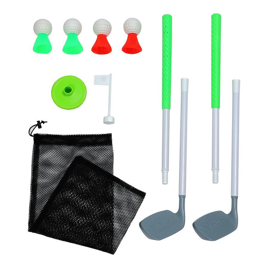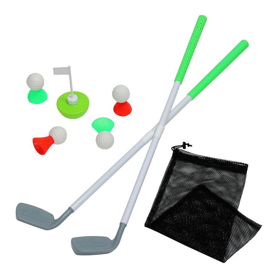 ●どこでも気軽に簡単ゴルフ!●ボールは羽がついていてティーアップが出来るので簡単にボールを捉えることができます!●ピンを投げてコースを設定、準備も楽々、収納バッグ付きで持ち運びも簡単です。