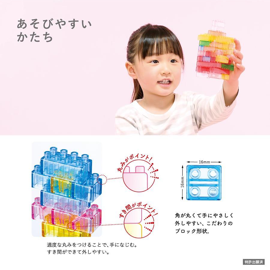 光が差し込む透明感が美しい、ダイヤブロック HIKARIIRO(ヒカリイロ) です。■透明感のあるブロックは、組んでいくと色が重なり、透明水彩画の混色のような感覚を味わうことができます。また、いろいろなヒカリに照らされることで、表情の移り変わりを楽しめます。■ブロックの角に丸みをつけたことで、手にやさしく外しやすい、こだわりのブロック形状。パーツの種類も豊富で、自由な発想をかたちにできます。■容器はお片付けをサポートできる形状になっており、フタの裏側にはブロックをはめることもできます。また、リビングになじむよう、外装は取り外しが可能です。