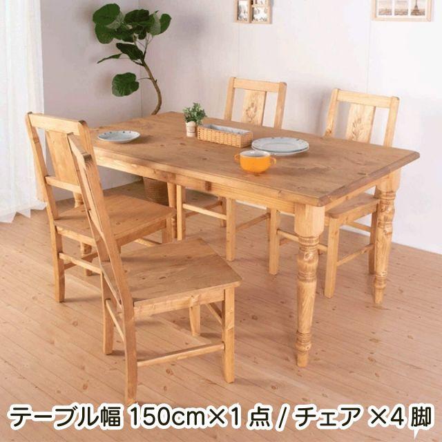 カントリー好きなダイニング5点セット(テーブル幅150cm×1点/チェア×4脚)