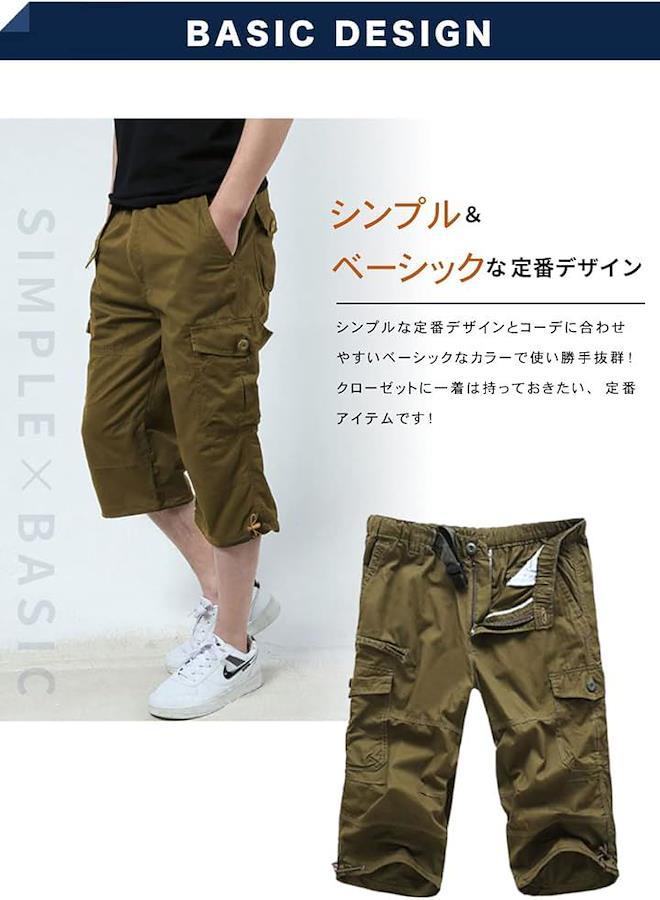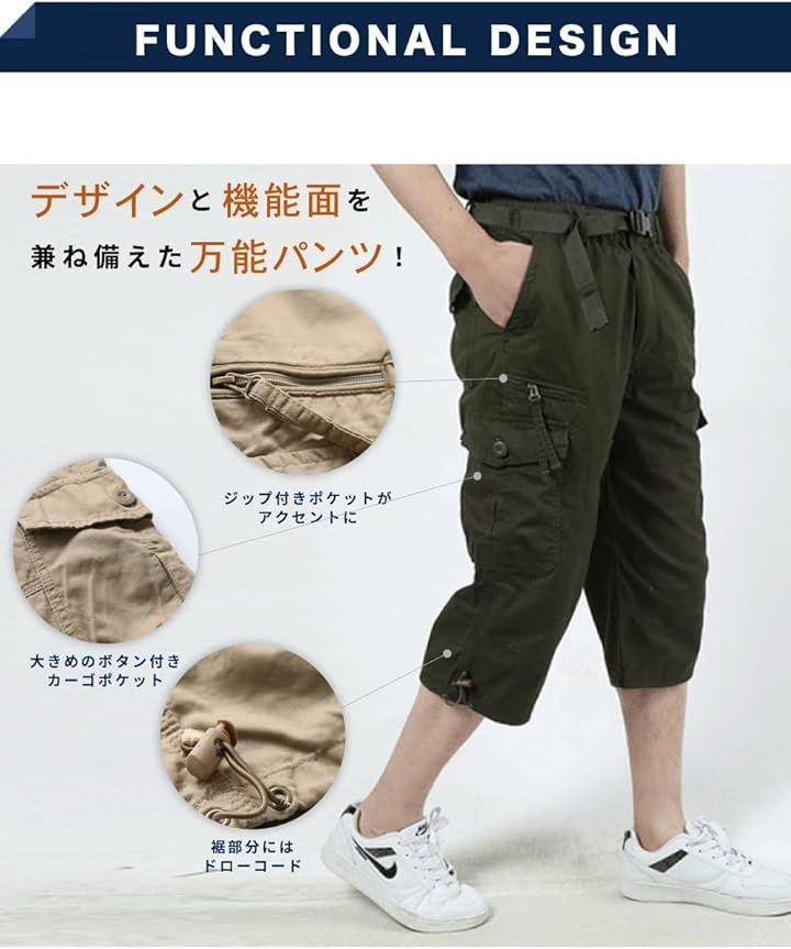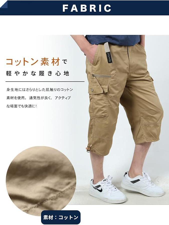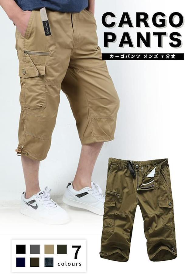 カーゴパンツ 7分丈 ミリタリー メンズ ボトムス 無地 ズボン スポーツ アウトドア 大きいサイズ 春 夏 涼しい ゆったり ワイド リラックス 3XLサイズ
