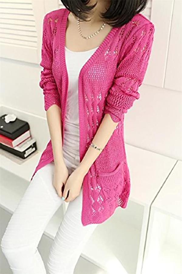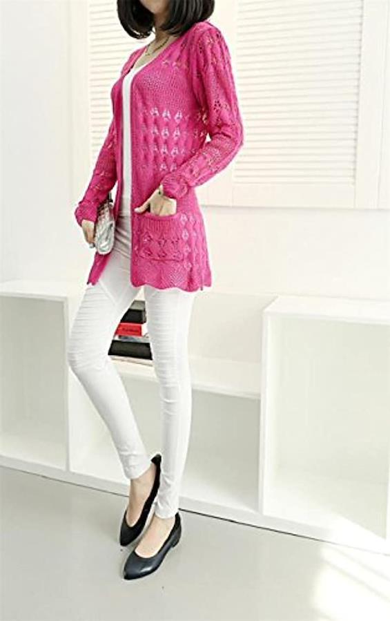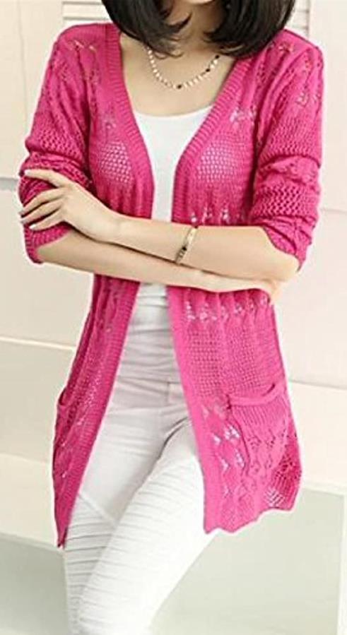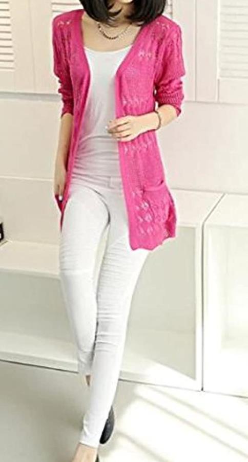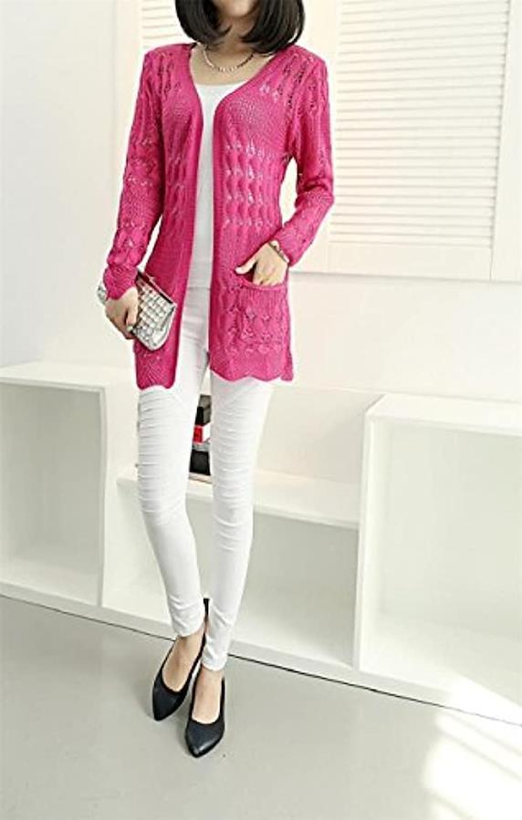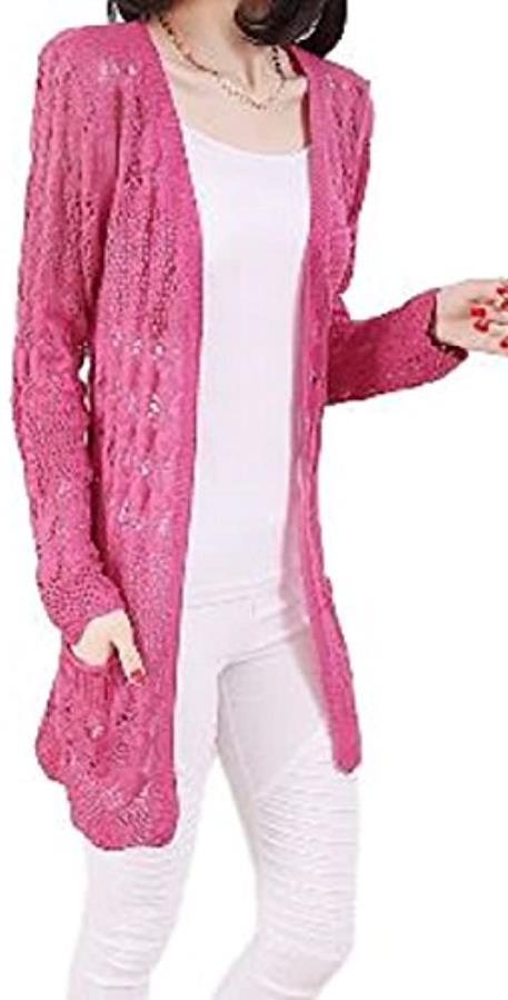 春秋秋冬長袖大きい薄手レースロングニットカーディガン。