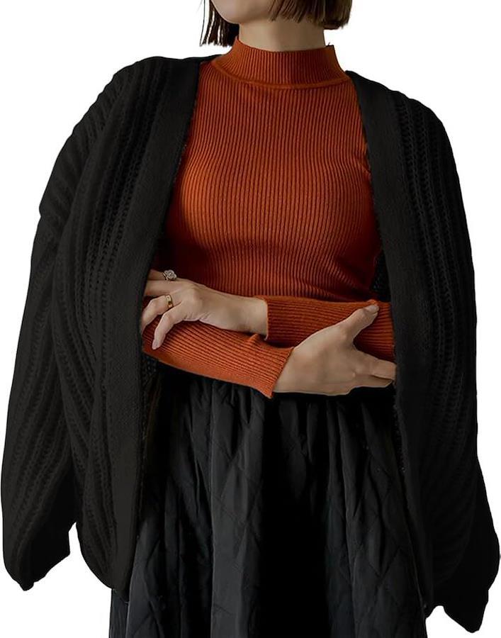 室内外問わずゆるっと羽織れ、簡単に温度調整もしやすいのが嬉しいポイントです。