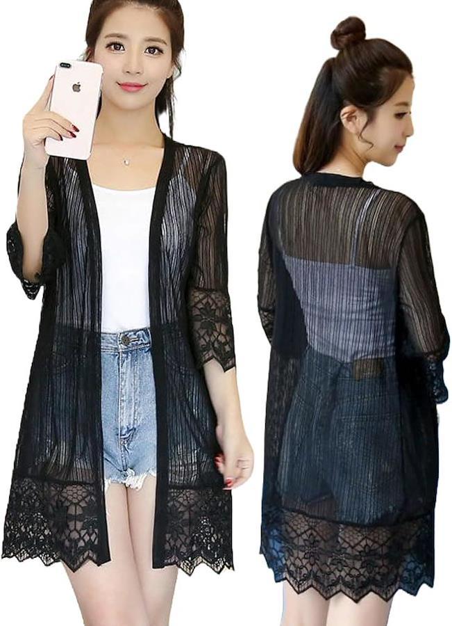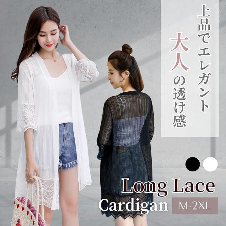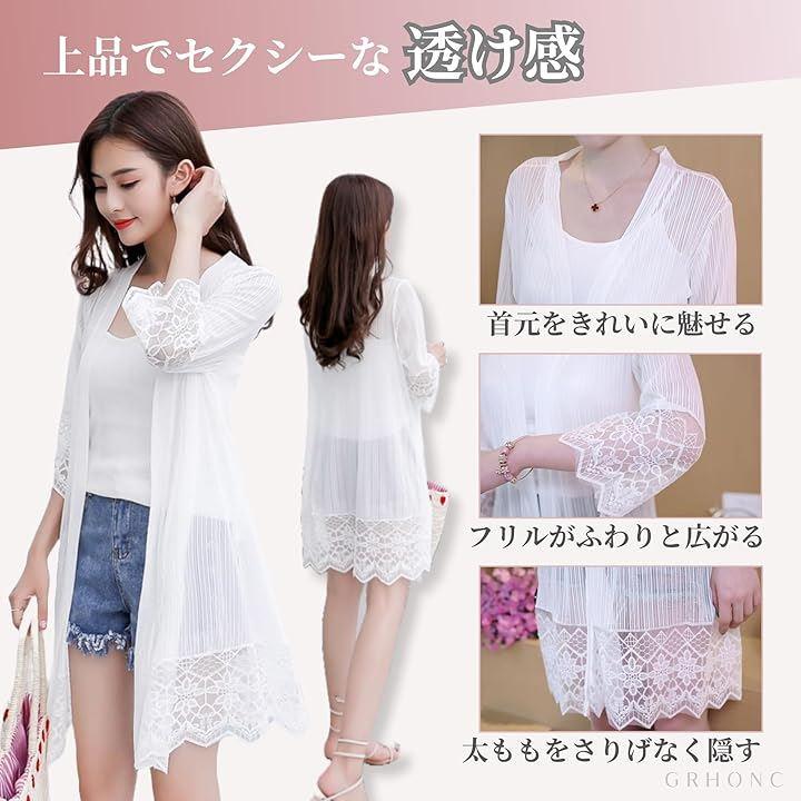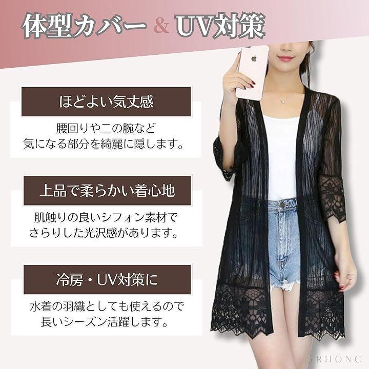 「商品特徴」透明シフォンの絶妙な透け感と快適な着心地を提供するレースカーディガン。