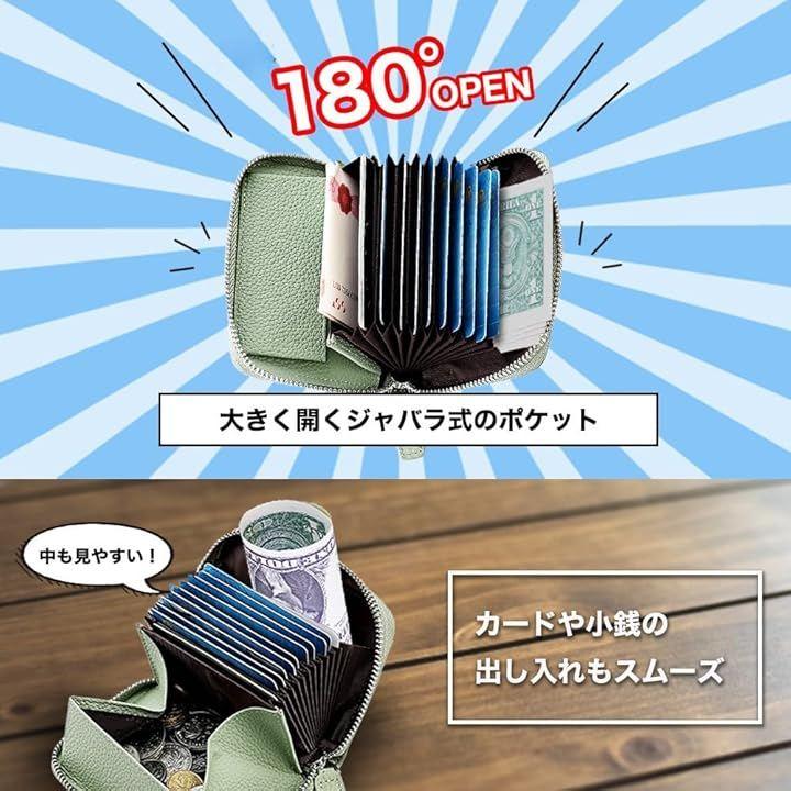 「最大180°OPEN」大きく開くジャバラ式のポケットで、中も見やすくカードや小銭の出し入れもスムーズです。