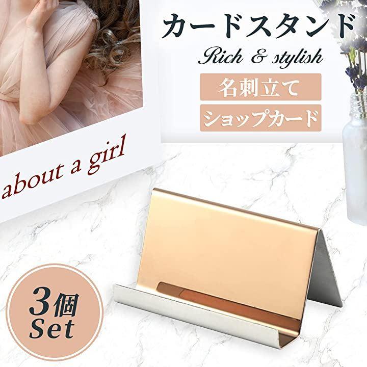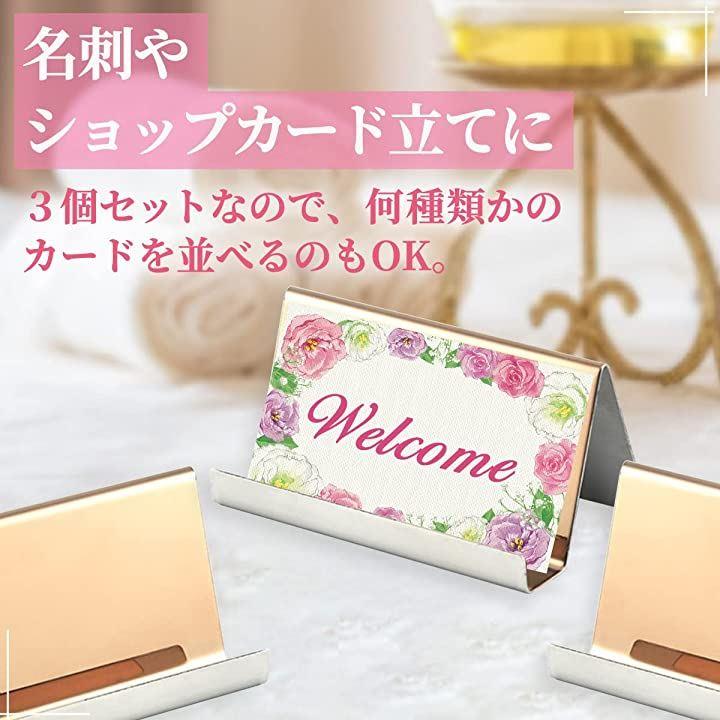 「商品内容」カードスタンド「セット内容」3個セット「カラー」ゴールド「サイズ」約9x5x4.5cm「素材」ステンレス *モニターの環境により、色の見え方に若干差が生じる場合がございます。