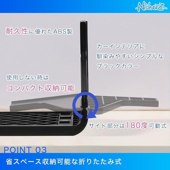 ABS樹脂製の本体は軽量で耐久性に優れ、車内のインテリアにもなじむマットブラック仕上げ。