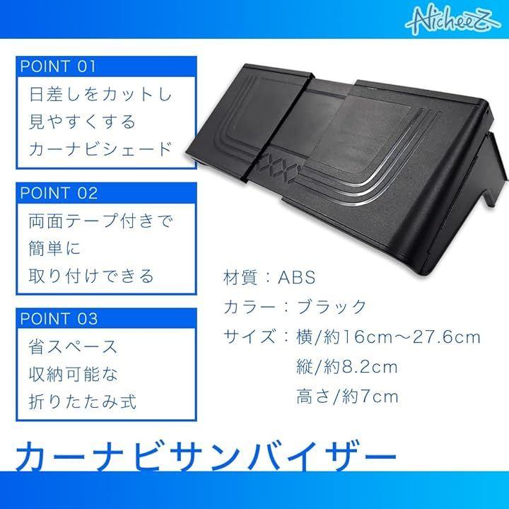 「商品内容」カーナビサンバイザー 材質:ABS カラー:ブラック サイズ:横/約16cm~27.6cm 縦/約8.2cm 高さ/約7cm