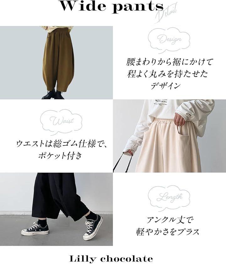 「デザインと特徴」 ゆったりとしたシルエットのアンクル丈ワイドパンツです。
