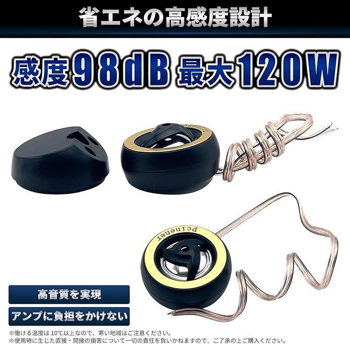 「高感度設計で、省エネでも大きな効果」 感度98dBの高性能設計と最大120Wの出力対応で高音域を歪みなく鮮明に再現するパワフルなドーム型ツイーターです。
