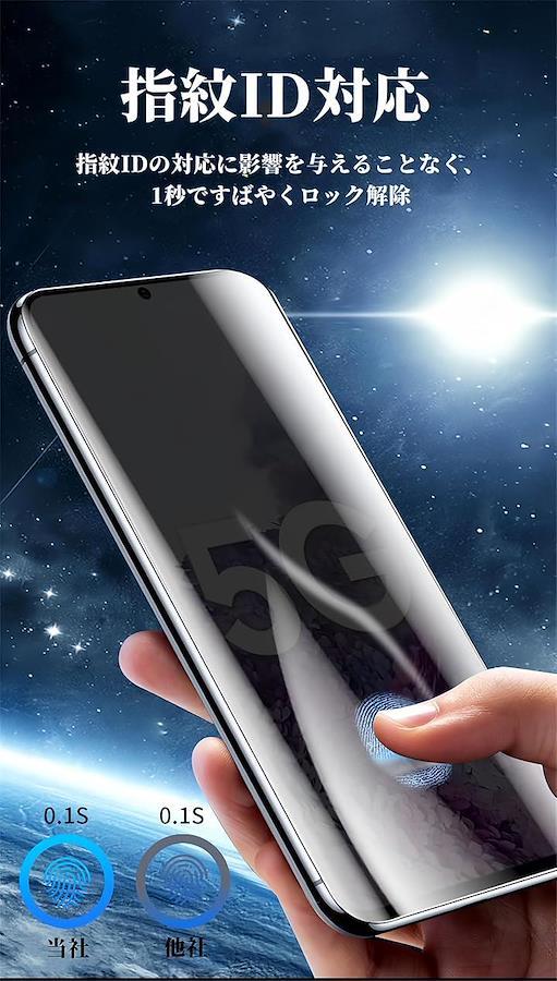公共の場で他人に画面を見られるのが嫌な方はぜひ使ってみて下さい。本製品は弾力性と柔軟性に優れているTPU素材を採用し、指紋センサーに保護フィルムを貼った状態でも、指紋認証は問題なく通る。