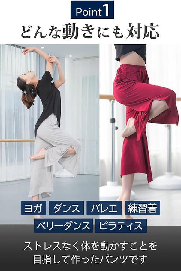 ヨガやティラピスなどスポーツで体を動かすのに最適なフレアパンツです。