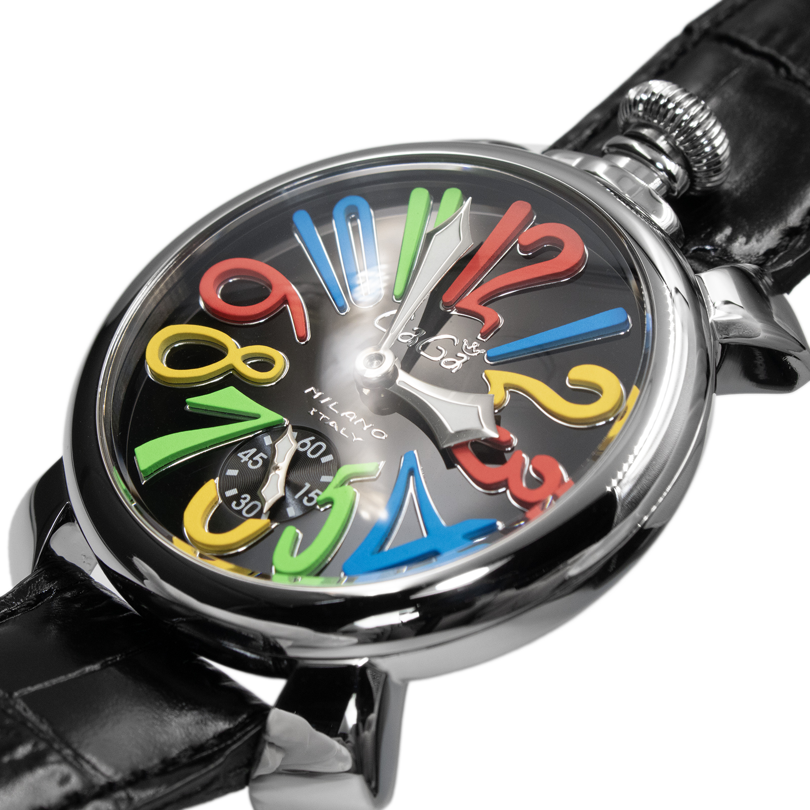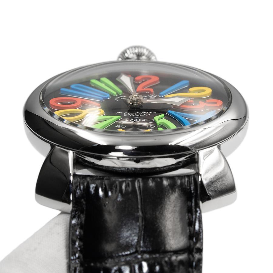 こちらは腕元をカラフルに彩り気分を上げてくれる、ガガミラノの腕時計でございます。