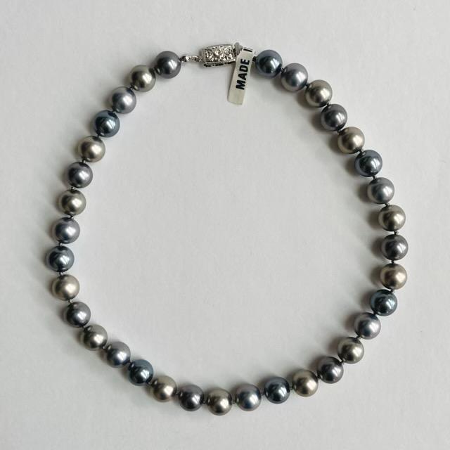 パールは当店のオリジナルカラーパールで、異なるグレー系パールを複数ランダムに使用しております。※原玉にはピンホールや小さい凹み等が見られる場合がございますが、自社にて検品の上許容範囲とさせて頂いております。