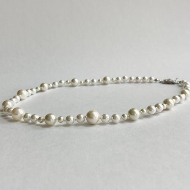 ガラスパールランダムmix all knotネックレス/6x10mm約43cm/ホワイトmix/made in japan