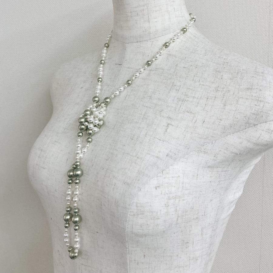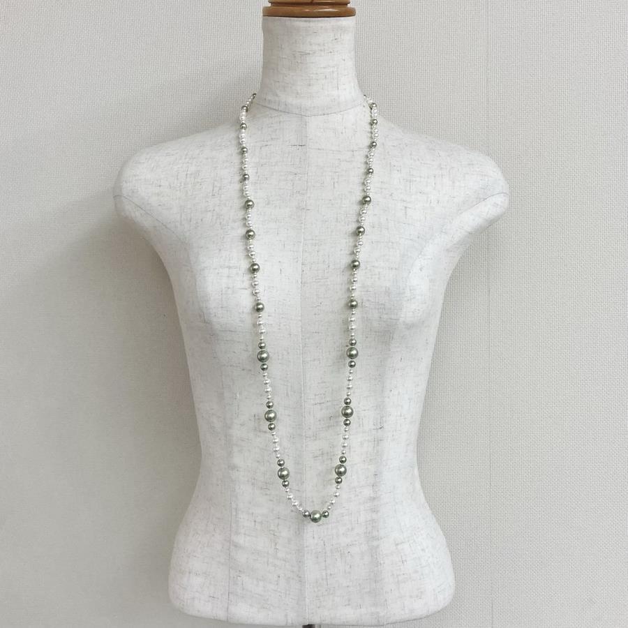 ガラスパールランダムmix all knotロングネックレス/4x10mm約102cm/クリーム/made in japan
