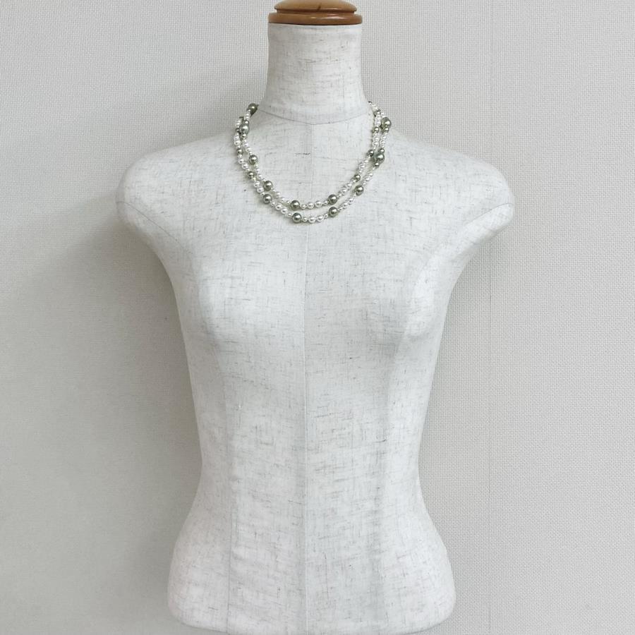 こちらはガラス素材の原玉を使用したオリジナル日本製ガラスパールネックレスです。パールとパールの間に1つづつ結び目を入れたオールノット仕様で、ワンランク上のコスチュームジュエリーとなっております。パールサイズは直径約4mm~10mmサイズをランダムに使用し、長さはゆったり着けられてアレンジも可能な全長約102cmとなっております。ガラスパール特有の高級感漂う重みとオールノット仕様で存在感のあるネックレスになっております。※オールノット加工は、玉同士に隙間があるため擦れ合いにくく・キズなどが付きにくい、又、結び目があることで動きがありしなやかさもある、更に、万が一糸が切れてしまった時でも最小限で抑えられる等が特徴です。