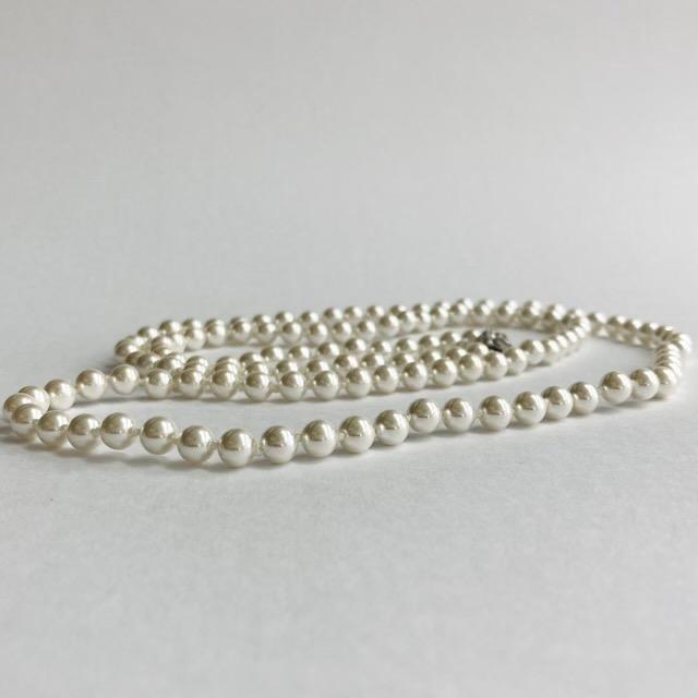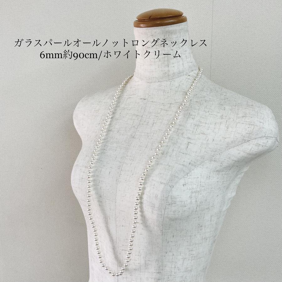 ガラスパール2Way all knotロングネックレス/6mm約90cm/ホワイトクリーム/made in japan