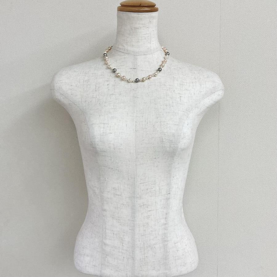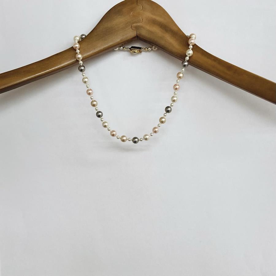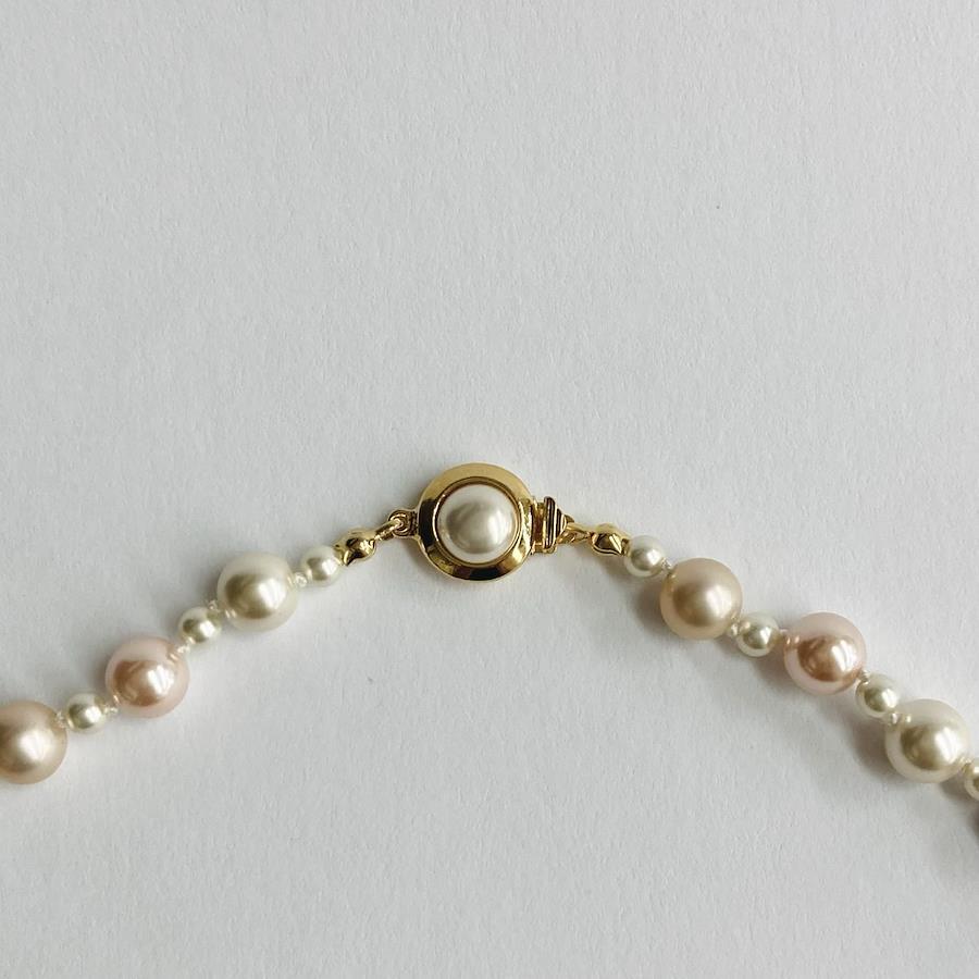 ※特徴であるオールノット加工は海外で好まれている仕様で、万が一糸が切れた場合にバラバラにならない点や、玉同士が密着していないので擦れあいにくく傷も付きにくい点・また首回りにフィットしやすくなっている点等がございます。※当店の自社工場にて塗装したパールになります。品質の状態も維持されており、剥がれや大きな目立った傷などもございません。※稀にピンホールや小さい凹み等が見られる場合がございますが、自社にて検品の上、品質に問題は無く許容範囲とさせて頂いております。