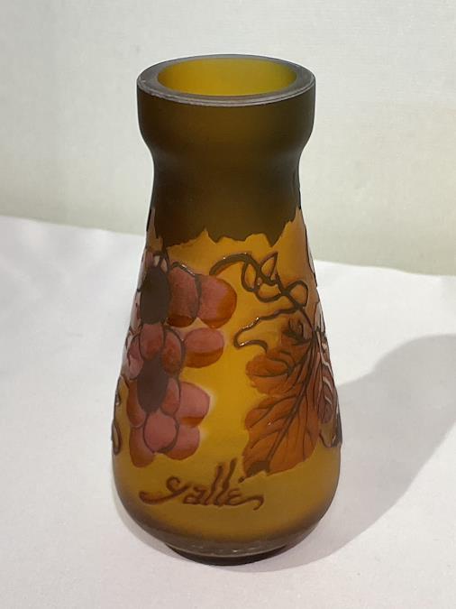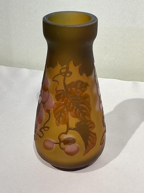 ガレ工房のブドウ柄の花瓶です。汚れあり、割れ欠けは見た限りでは無しです。