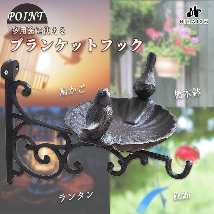 「多用途に使えるブラケットフック」植木鉢や鳥かご、提灯、蚊取り線香、ランタン、風鈴など、様々なものを吊り下げられるブラケットフックは、壁面やフェンスに簡単に取り付けられます。