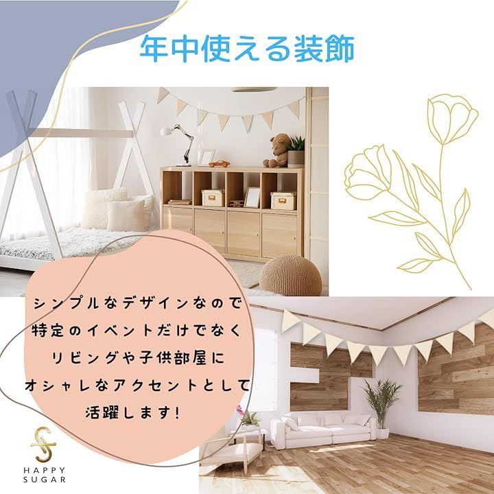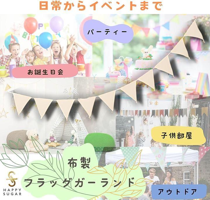「日常からイベントまで」この布製フラッグガーランドは、お誕生日やパーティーの飾り付けに限らず、子供部屋のインテリアやアウトドアでのテント装飾など、様々な場面で活躍します。